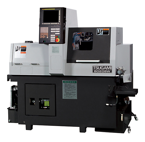 津上B0128W走心機、針對復雜零件一次加工成型,主要具有提高效率的優點,因為各個刀具軸均可單獨動作,提升了同步加工協調能力,外徑粗精加工可以一體、刀具擴展更豐富;主背軸完全獨立加工,將復雜零件加工時間有效減少。針對復雜零件大批量生產比較適合。