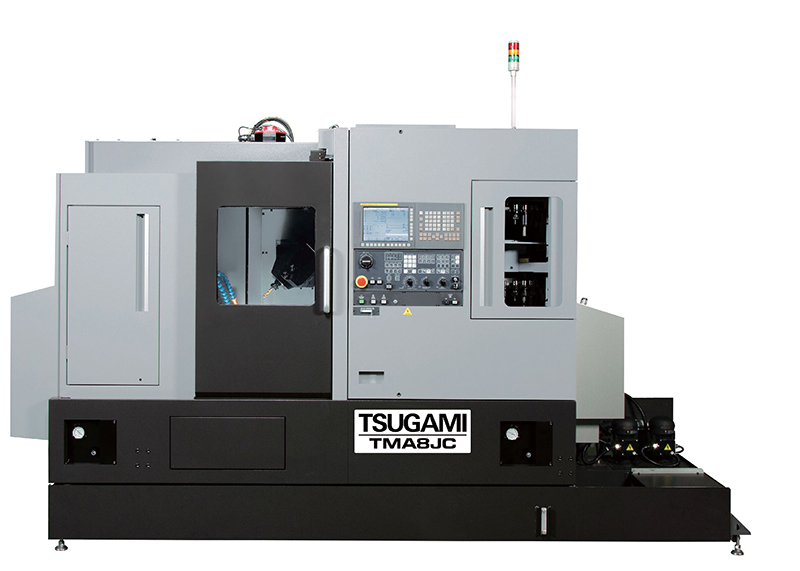 津上TMA8J是真正意義上的車削中心機床,刀具主軸可以當車刀、又可以當加工中心的主軸;搭配雙卡盤主軸,巧妙將車床和加工中心融合到一臺機床,其加工能力可窺見一般,主軸8寸卡盤、副主軸6寸卡盤,主軸5000rpm、11/15KW,副主軸5000rpm、5.5/11KW,刀具主軸10000rpm;工具主軸之B軸-15°-195°;機床重量8500KG.